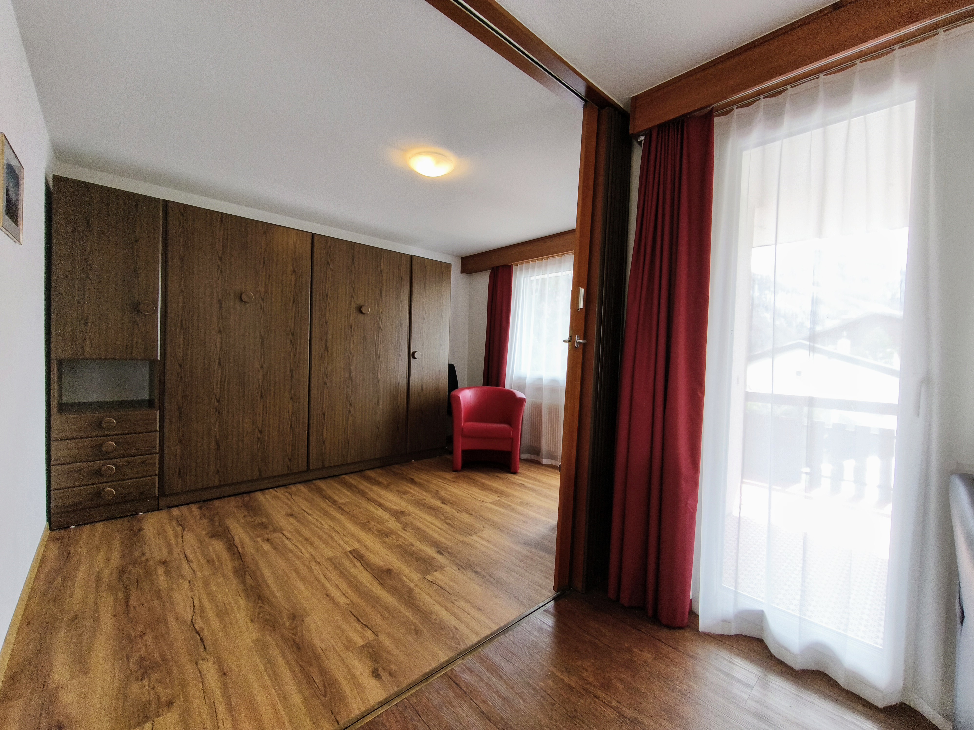 - 1 Schlafzimmer mit 2 Klappbetten ( schliessbar mit Falttüre zum Wohnzimmer )