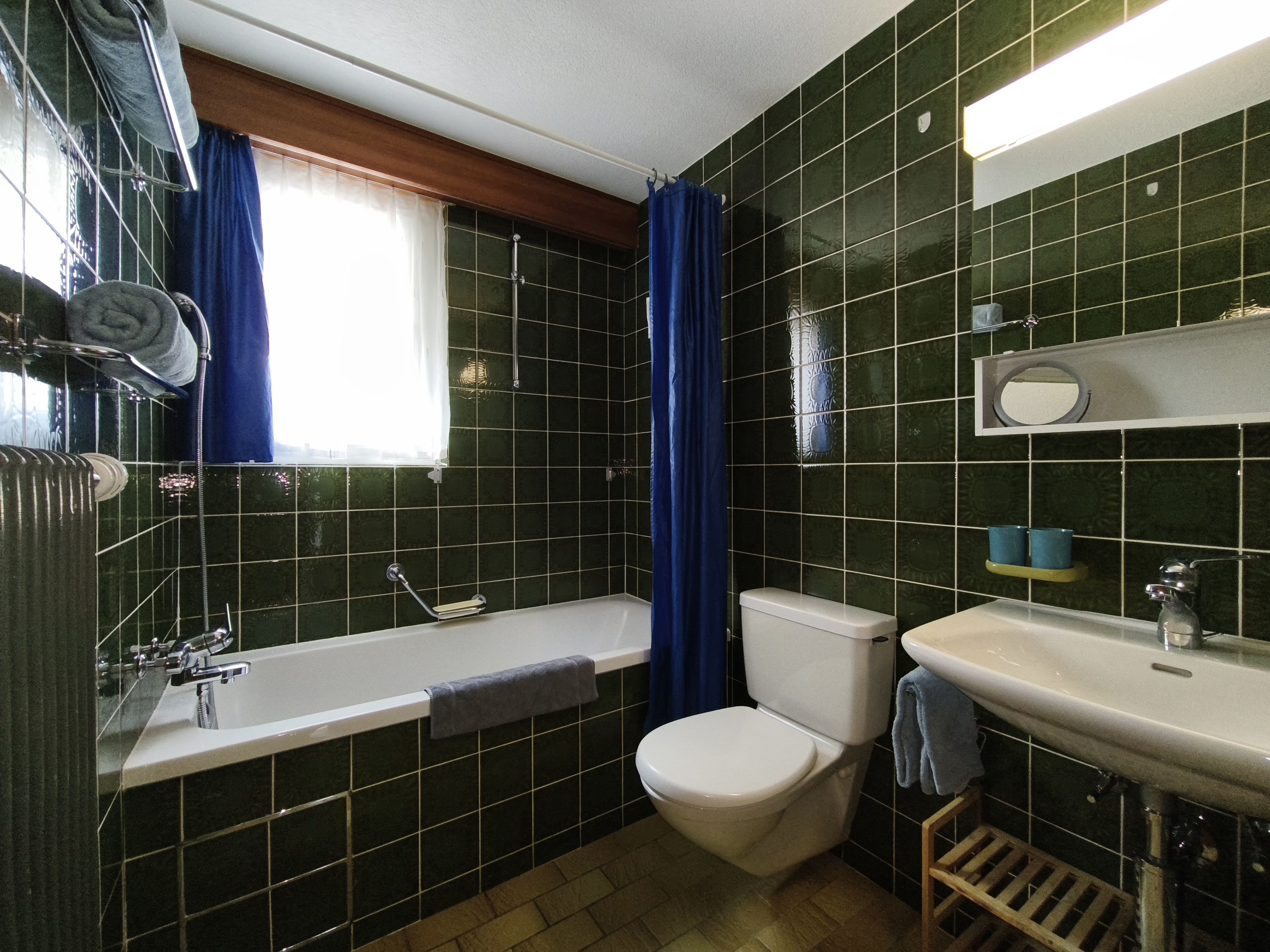 - Bett-, Küchen-, und Frottéwäsche vorhanden